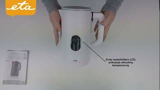 ETA Elsa to czajnik ze stali nierdzewnej z elektroniczną regulacją temperatury (40–100°C).