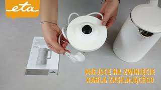 Ciesz się prostotą w codziennym używaniu czajnika ETA Emma. Pokrywa otwiera się jednym naciśnięciem przycisku, co ułatwia nalewanie wody. Wskaźnik poziomu wody wewnątrz pozwala na precyzyjne odmierzenie. Ukryta grzałka płytowa i obrotowa podstawa z centralnym złączem upraszczają czyszczenie i codzienne użytkowanie. Przewód zasilający można wygodnie nawinąć w specjalnym miejscu w podstawie, co pomaga zachować porządek na blacie.