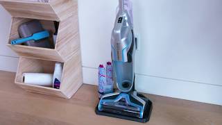 BISSELL Crosswave Cordless 2582Q to urządzenie, które działa kompleksowo – odkurza, myje i suszy czyszczoną powierzchnię, oszczędzając czas i energię użytkownika. Doskonale radzi sobie zarówno z powierzchnią dywanu, jak i podłogi.